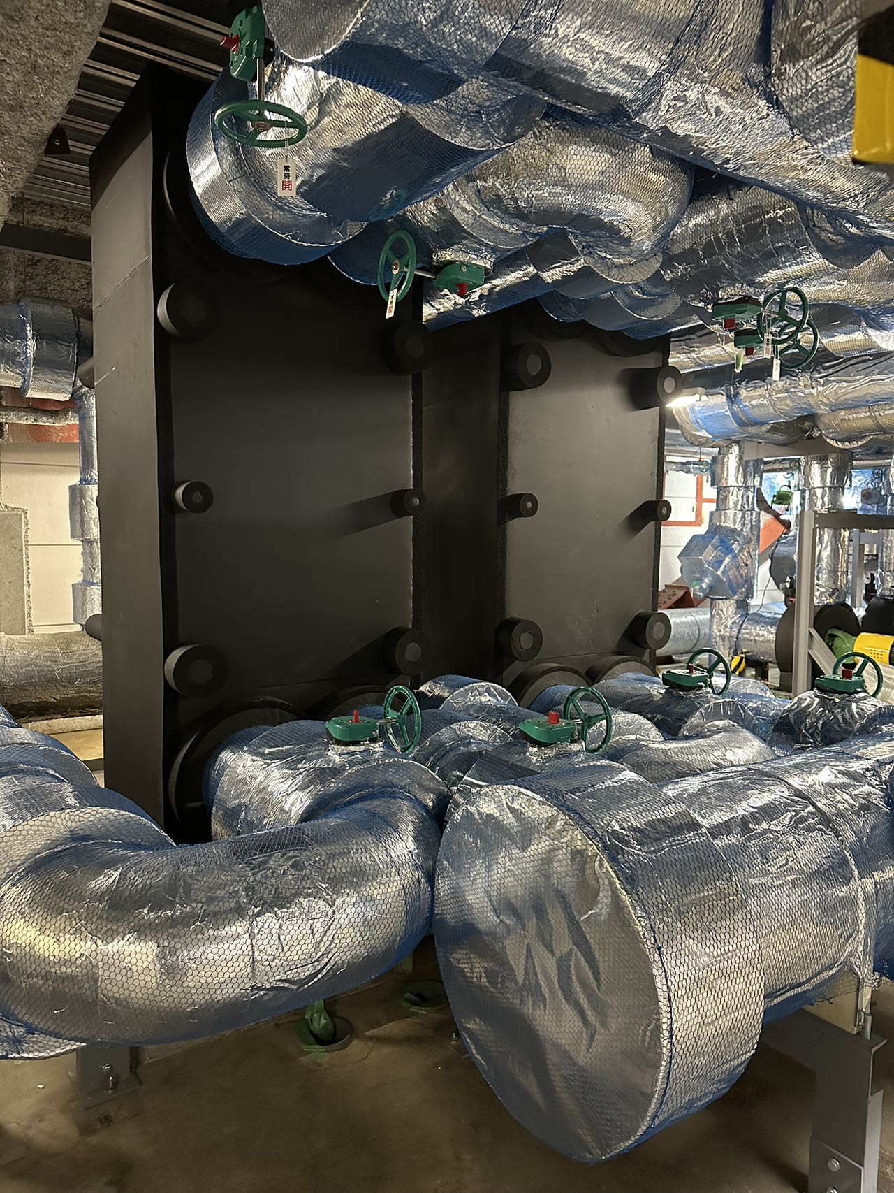 熱絶縁工事を分かりやすく言うと「冷たいものを冷たいまま、熱いものを熱いままに保つ」ための工事です。マンションやビルの冷暖房設備や、工場などの機械・配管類に用いられており、日々熱エネルギーを利用する現代において、この熱絶縁は欠かせないものとなっております。放熱や熱吸収などの熱伝導を遮る事で、熱損失を少なくしたり、温度差を抑えて結露防止をしたりするための工事の事を言い、その結果省エネルギーに貢献します。CO2削減や地球環境にも影響する大切な工事です。
